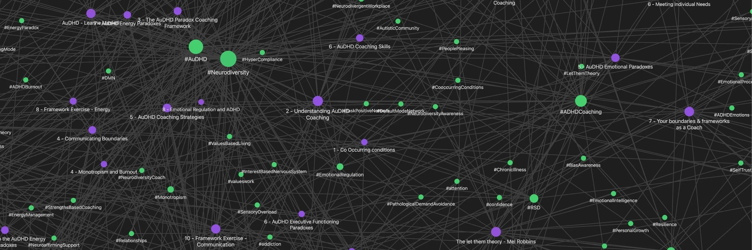Instead of forcing myself into a linear list, I built a nonlinear ecosystem. My external brain mirrors the way my mind actually works. It is networked, branching, interconnected, alive. I no longer need to remember everything. I write it down. I store it. I link it. I use AI to automatically tag and summarise it. I let my second brain hold what my first brain cannot. Tasks are captured anywhere and surfaced automatically. Notes are summarised and indexed with my own local AI tools. Screenshots become searchable text. Every article I write is logged and summarised. Every coaching concept I learn becomes a node connected to others. I listen to books on Audible, but then get ChatGPT to generate a summary which I add to my Obsidian vault. I have scripts that run each night, creating embeddings to drive my local AI tools. I can now ask questions like “How would I handle a coaching situation like this based on my past learnings?” and receive answers derived from my own knowledge base. Nothing is lost anymore. Nothing disappears. Everything connects.